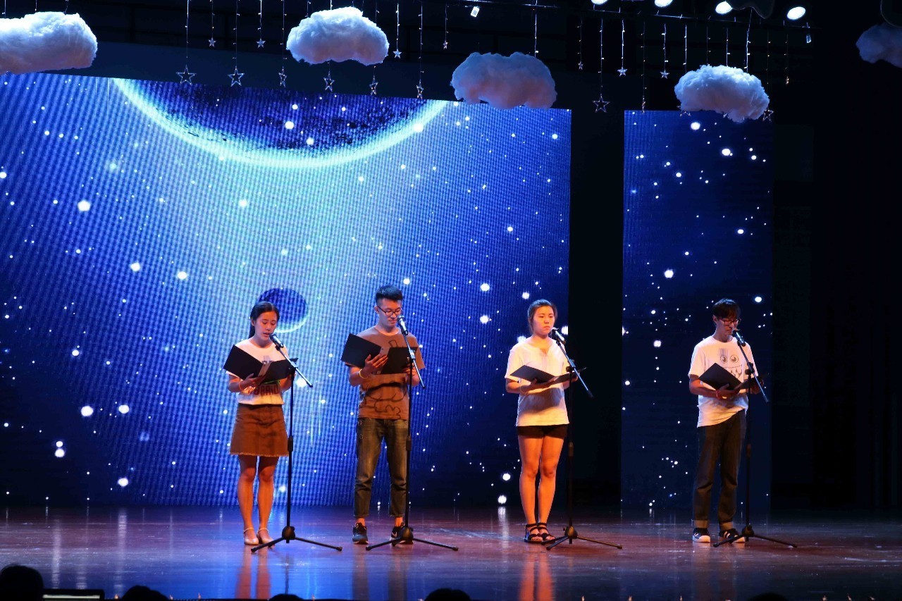 伴随晚会开始倒计时的结束,舞台瞬间沸腾,燃爆全场的开场舞直接将现场氛围烘托至极。紧接着主持人徐鸿飞、朱超凡、徐璐娜、崔宝月同学致开场词并介绍下一个节目——歌曲《流浪记》,一改开场舞火爆风格,《流浪记》婉转悠长,似乎真的让我们看到那个世间浪子。随后话剧《倩女幽魂》将人鬼情未了以别样的形式带给大家,使稍渐伤感的氛围变得轻松愉悦。而《花儿为什么那样红》将古典舞的美完美呈现于大家面前,引起观众阵阵惊叹。之后便是第一个互动环节肢体接力,大家看的不亦乐乎。
