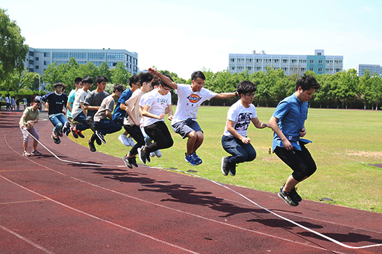 “跳长绳”比赛实则就是大家一起跳一根大绳子,与普通的跳绳略有相似。可这种大绳子更加考验的是同学们的协作合作能力,只有大家的步伐一致才能一起跳过绳子。南操上,各班级有自己不同的方法来跳大绳,有的班级排成一条长龙,还有的班级则是两排的队伍,这种新颖有趣的跳绳方法让人耳目一新。操场上,随处可听到大家齐心协力的加油声和成功越过长绳的欢笑声。经过一个多小时的比赛,此次活动也已将近尾声,不管最终的成绩怎样,大家的脸上总是洋溢着微笑。