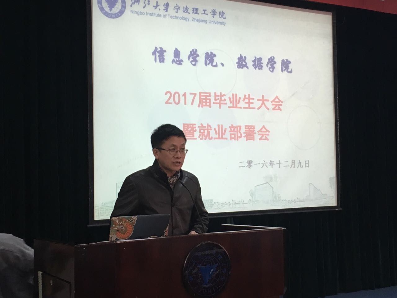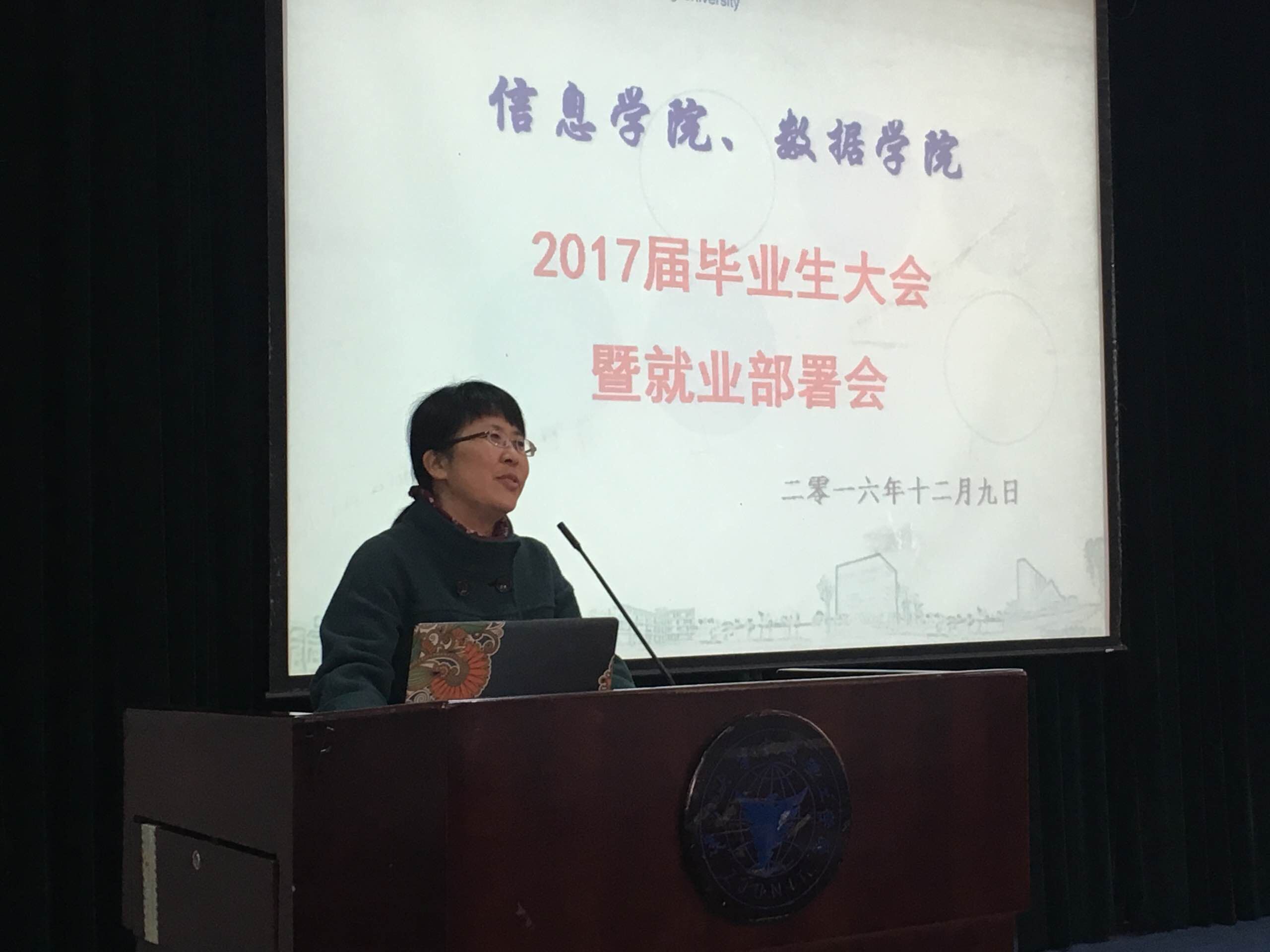 为加强对临近毕业学生的教育工作,同时也为增强学生的就业意识与安全意识,必赢76net线路与数据学院于12月9日上午在NF103召开2017届毕业生大会暨就业工作动员大会。数据学院院长庞超逸老师、数据学院党总支书记方国娟老师、必赢76net线路党总支副书记傅晓宇老师及学工办、教务办老师、2017届毕业班班导师以及2017届全体毕业生参加大会。