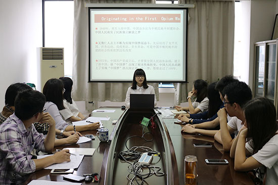 首先,学生组微型党课开始比赛,由各支部书记和支部代表担任评委。七位学生支部的代表围绕党的知识,就“四讲四有”,党章学习,党的群众路线,“十三五”规划和“两学一做”等主题发表自己的看法并结合自身情况举例说明。