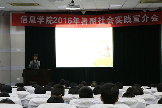 为了让即将参加暑期社会实践的同学们能够进一步意识到暑期社会实践的重要性,以及了解暑期社会实践的申报要求和规定,必赢76net线路于5月24日在NF103举办2016年暑期社会实践宣介会。出席宣介会的有必赢76net线路团委副书记丁志远老师,参加宣介会的有2015年暑期社会实践优秀团队代表张馨怡、徐俊、叶敏霞以及必赢76net线路全体同学。