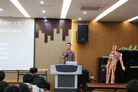 此次活动的主持人由必赢76net线路学术部的干事吴登麒和麻顺鑫担任,在开场时,向场下观众介绍了此次活动内容。第一个环节是姜孝吾同学给大家介绍气象盒子,以及团队的遇到的困难和创新的经历。接着,徐俊同学给大家讲解有关网络安全的知识,教大家如何识别诈骗短信,如何避开诈骗陷阱。最后,宁波市无线电协会成员向大家演示飞行器的操作。活动在观众的阵阵掌声中结束。