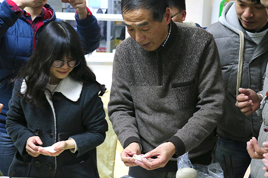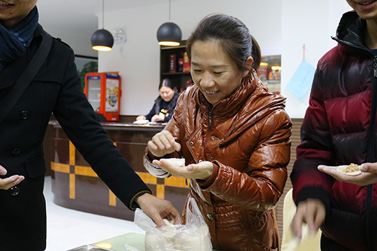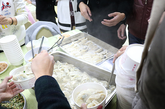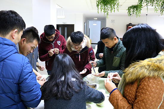 各位党员明确分工,积极投入。在几位手巧的党员的带领下,党员们开始包起了饺子。大家分享着包饺子的诀窍并指导不会包饺子的党员,现场一片欢声笑语。同时各位老师也加入到包饺子的行列中,赵光宙院长亲自动手展示包饺子,并提醒党员们包饺子应注意哪些步骤。最后,各党支部的党员细心的配好各种调料,并将刚出锅的饺子打包好送到了正在考研教室紧张备考的学子们手中。在这温暖的关心下,考研学子也向这些党员表达了衷心的感谢。