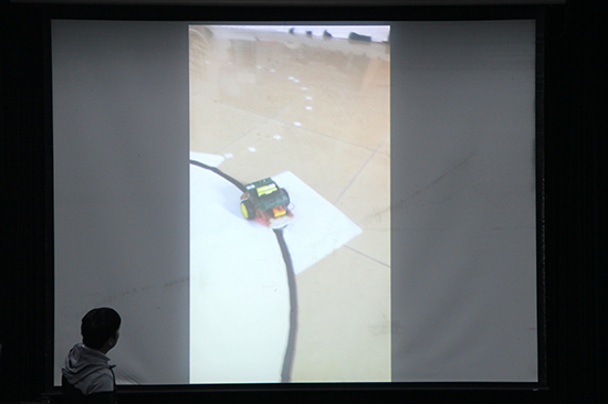 李奕阳同学向观众介绍智能汽车的工作原理