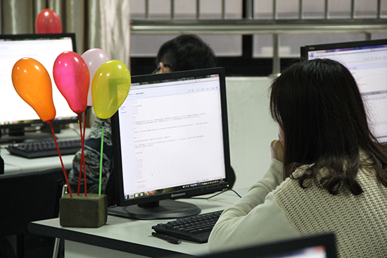 比赛正式开始,参赛选手登录竞赛系统。此次比赛共设有八道题。参赛选手每完成并上交一道题给老师批阅。待老师批阅结束后,给予正确解答的选手一个对应颜色的气球表示鼓励。同学们根据试题要求着手答题,运用所学知识,严谨认真地完成程序编写,并进行调试,专心致志投入比赛。