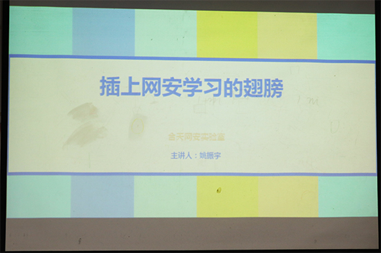 本次讲座由合天智汇的姚振宇老师主讲。姚振宇老师以“插上网安学习的翅膀”为主题,对现阶段的网络安全教育、网络信息安全人才培养及就业情况做了详细分析。姚振宇老师还就网络应用的风险与规避等方面进行了细致讲解。姚振宇老师介绍到,合天网安实验室以大规模在线开放实验的方式,向网络安全爱好者和大学生提供网络信息安全学习服务,通过模拟真实场景让用户掌握某项网络与信息安全技能。