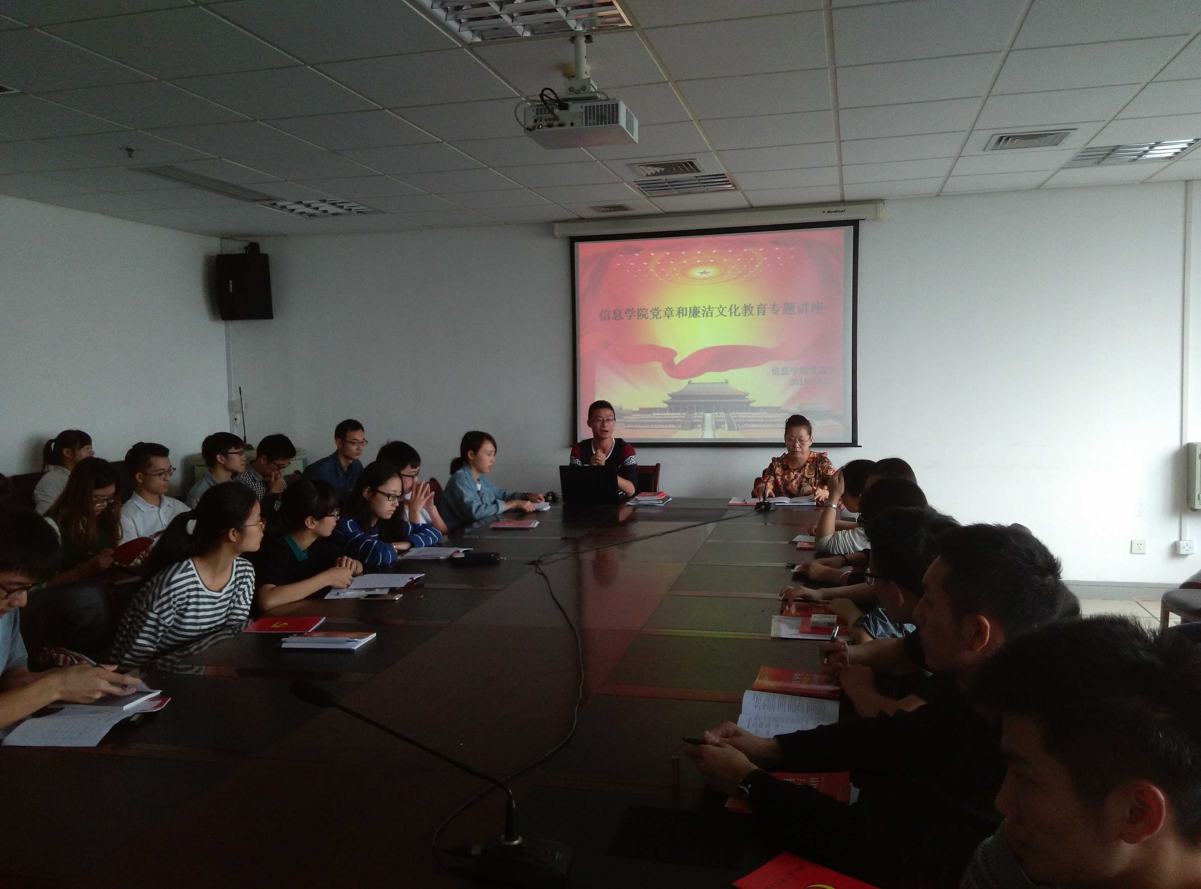 在中国共产党发布《中国共产党廉洁自律准则》和《中国共产党纪律处分条例》之际,为了进一步加强党章、准则和条例的学习以及廉洁文化教育,必赢76net线路于10月23日15:30在石麟大楼602会议室举行了党章学习和廉洁文化教育专题讲座。学院党建兼职组织员姜华老师、思政主管王常青老师、思政副主管邬旭东老师及党员和第二期发展对象培训班全体学员参加了此次专题讲座。本次讲座由思政副主管邬旭东老师主持。