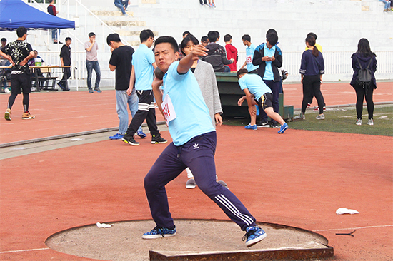 运动会各项比赛纷纷上演。跳高场地上的新生左腿一蹬地后右腿跃起的弧度、轻盈转身的铅球参赛者有力地抛出的铅球、脚下极速奔腾而手上紧握的接力棒、跳远的新生由缓而急最后纵身一跃跃入沙池的清脆声,所有画面交织在一起,构成了一副尽显青春活动的动人画卷。穿着统一色调的新生们、游走于赛道的裁判们、念助威稿的主持人们,加油声、呐喊声,与在赛场上拼搏的运动员的身影,整个操场成为了一个展现年轻活力的舞台。