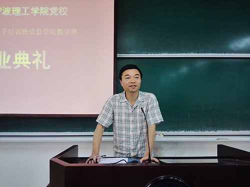 典礼上,张杰老师总结了本次培训的主要收获、存在的不足,并提出了几点希望。张杰老师首先指出,通过本次培训班的学习,学员们对中国共产党的认识更加系统、更加全面,理论水平有所提高,学员们的入党动机进一步端正,找到了自己今后要努力的方向。接着,张杰老师指出本期培训班存在一些不足之处,如有的学员思想上不够重视,态度上不够端正,学员对党的基本理论的学习还有待进一步加强。针对本次培训班开展的实际情况,张杰老师提出了几点希望:希望大家今后继续加强理论学习,提高自己的理论素养;希望大家继续端正入党动机,解决好为什么要入党的问题;希望大家按照党员的标准严格要求自己,用实际行动争取早日入党。