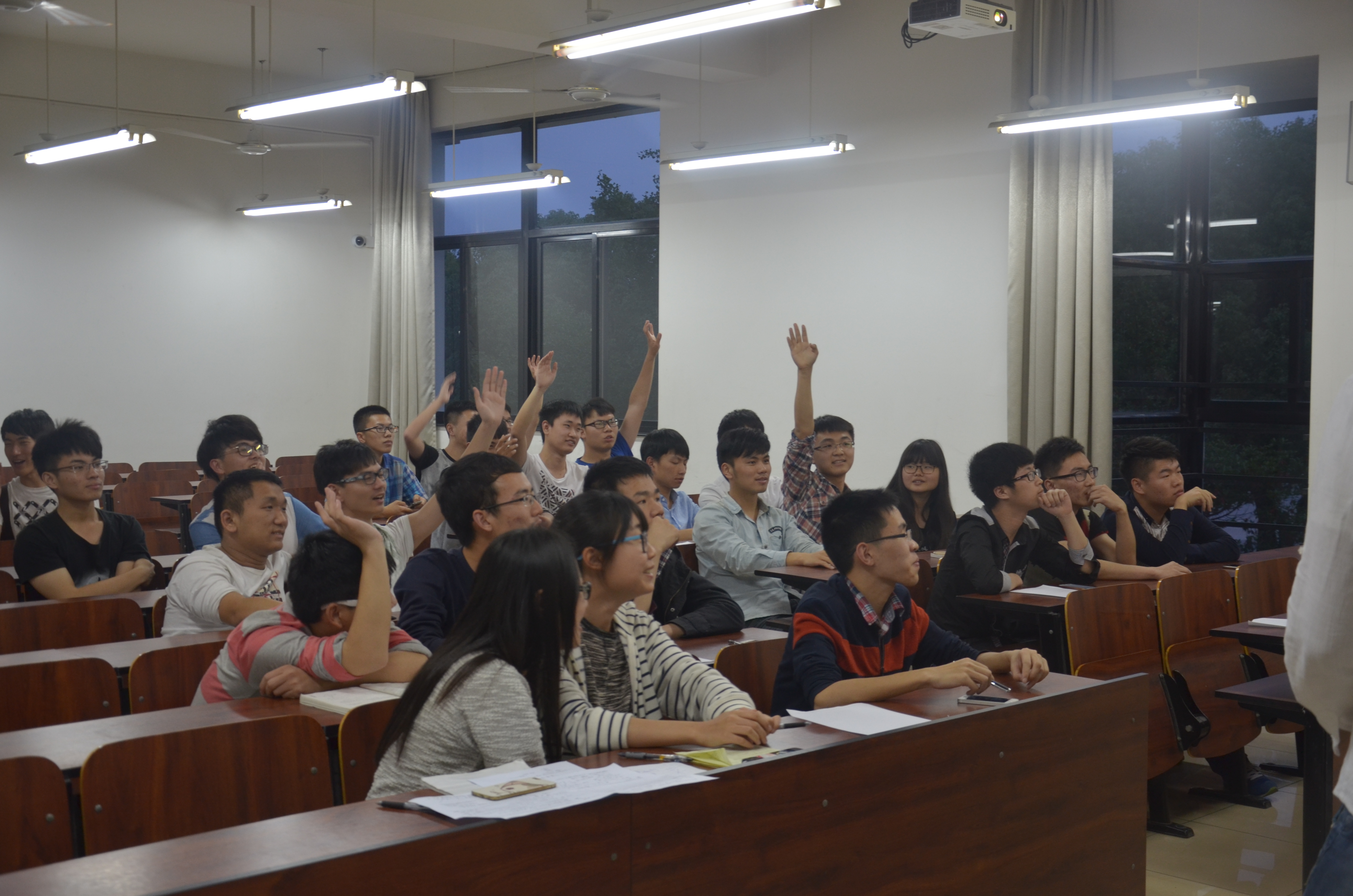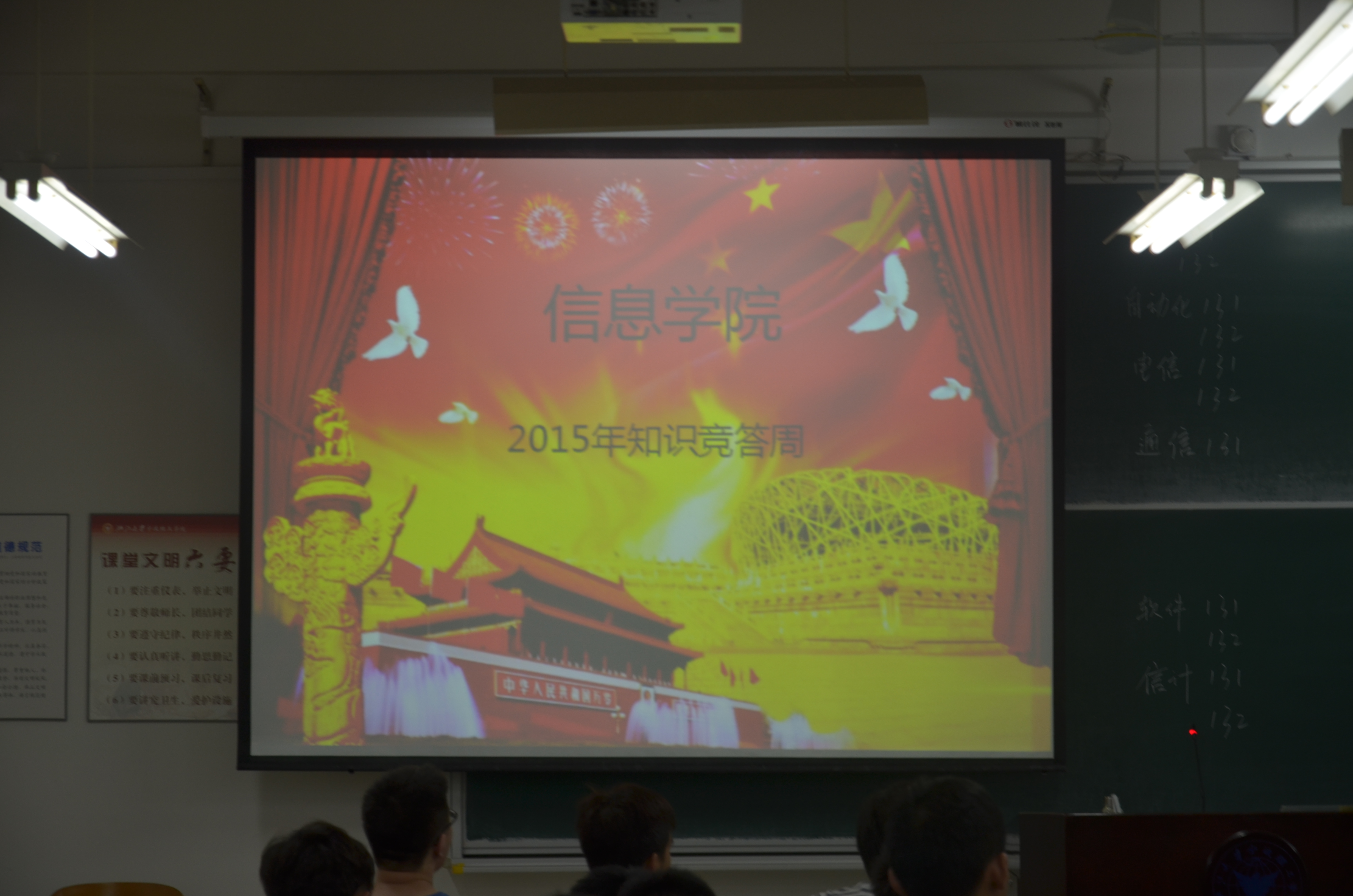 知识竞答比赛分设在两个教室,NB220为12级及13级的各班级团支部代表的比赛场地,而14级的团支部成员则在NB218进行比赛。活动为以班级为单位,由主持人展示题目,所有人员可以在主持人宣布开始之后进行抢答,答题采用积分制度。