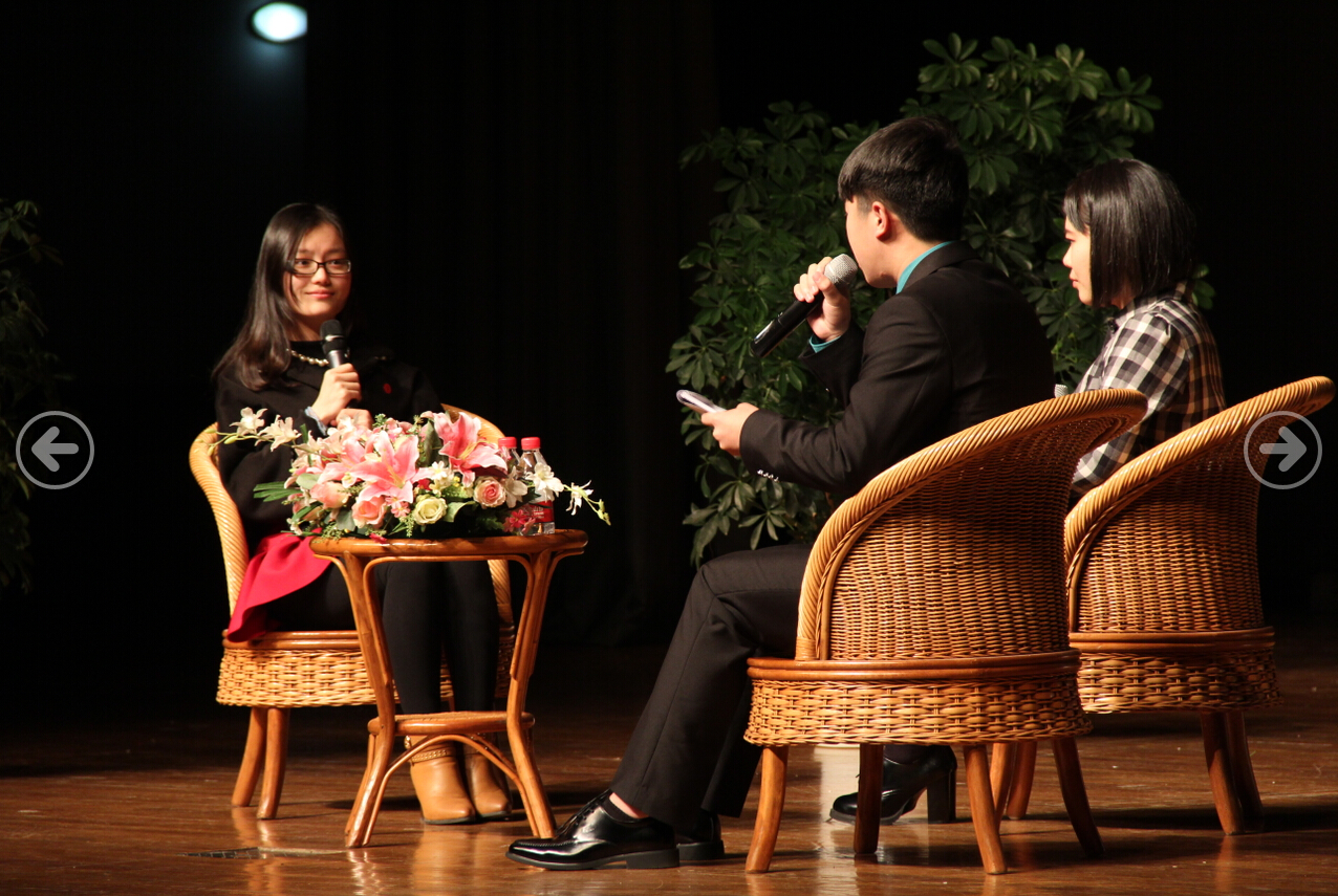 第一位访谈嘉宾王佳艳成绩优异,曾获得国家级奖学金、宁波市十佳大学生、现任数学建模社社长。在台上,淡淡的笑容中透露出她的自信与开朗。“首先要感谢的肯定是我的班助”,一开场王佳艳就表达了她的感激之情,“刚进大学我也很迷茫,在排球队我认识了一个优秀的学姐,她带领我融入了大学生活”,王佳艳如是说到。她感谢专业老师像大哥哥一样的帮助自己,感谢一群学霸室友给她创造了良好的学习环境。“即使你再努力,也离不开他人的帮助”。王佳艳还对数学建模做了介绍,“老方法新用使我的了美国大学生建模比赛第二名”,王佳艳对此颇感自豪。建模队的经历让她学会了团队合作,学会了坚持,让她懂得承受十年磨一剑的困难。“预则立,不预则废”,“不忘初心,方得始终”,王佳艳与台下的学弟学妹们分享了自己的人生格言。