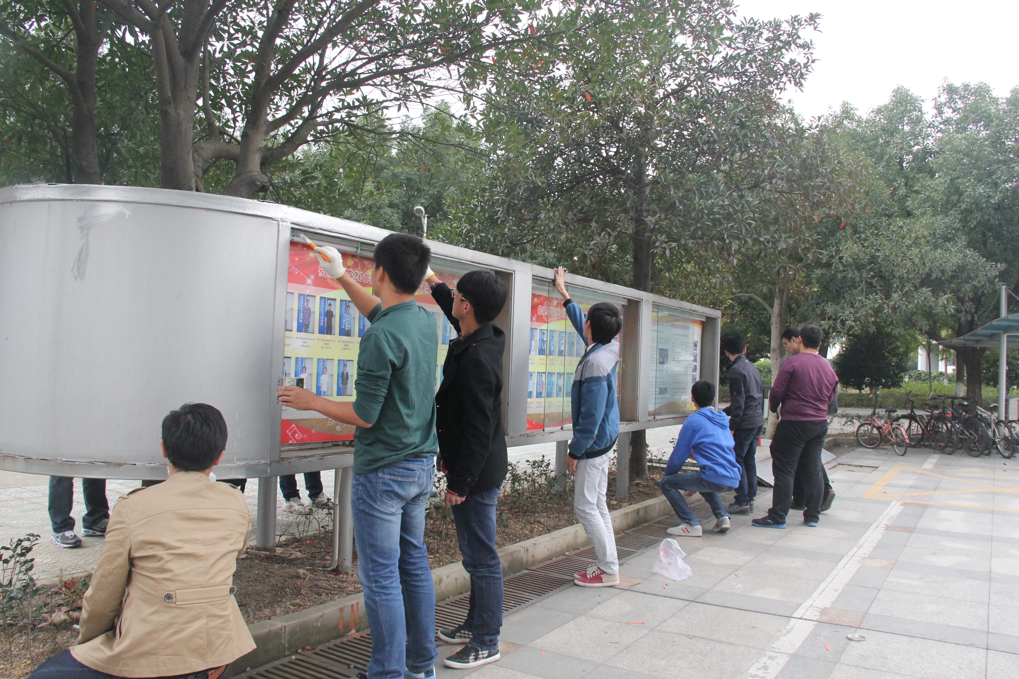 必赢76net线路团学干部注重在日常工作中贯彻“三自”教育。近日,看到学院宣传栏锈迹斑斑,团学干部利用课余时间自己买来油漆、手套和刷子,用砂纸磨去橱窗上的铁锈,然后在涂上一层保护漆,让学院的宣传栏焕然一新,给广大师生一个了解学院信息的美丽窗口。