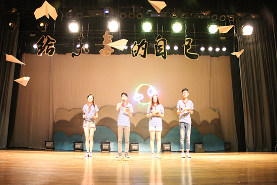 伴随着心跳声的音乐鼓点,学生制作的可声控的、用代码控制的“小鸟和云朵”图案LED显示屏舞美呈现在大家眼前,赢得满堂彩。一首开场的《Viva la vida》,电子钢琴、电吉他与歌声的精彩配合引发了现场的气氛,也开启了晚会《复刻·时光》、《季忆·留夏》、《青春·未央》三个篇章的节目。疯舞堂的舞蹈、话剧《给时间一场旅行》、朗诵《难忘理工》、歌曲《失落沙洲》等精彩的表演赢得了学生阵阵掌声,尤其是电筒舞《肆水流年》,低年级的学生们用电筒配合旁白娓娓道来2014届毕业生们四年的故事,表达了学院学生对毕业生们的祝福。毕业之际,老师们以《同桌的你》、《让世界充满爱》两首歌曲送上了祝愿。晚会在一曲《给未来的自己》中,在低年级学生的集体祝福中,在“阳光信息,永争第一”的口号声中落下帷幕。