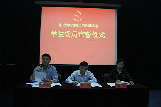 大会在庄严的《国际歌》的合唱声中拉开帷幕。吴新林老师带领全体毕业生党员重温了入党誓词。软件学生党支部书记毛梦恒同学代表全体学生党员上台发言。毛梦恒同学回顾了入党过程中自身所得到的锻炼与成长,代表全体毕业生党员对母校和党组织表达了谢意,表示走上工作岗位后要继续时刻牢记党员身份,发挥先锋模范作用。张杰老师对全体学生党员对学院发展做出的贡献表示了感谢,并对毕业生党员提出了希望与要求:一是希望毕业生党员坚守职责,带头做好就业与文明离校工作,站好最后一班岗;二是希望毕业生党员牢记党的宗旨,努力工作,严格要求自己,做好工作中的每一件事;三是希望毕业生党员饮水思源,承担起更多的社会责任,努力为母校争光,无愧于母校的期望。