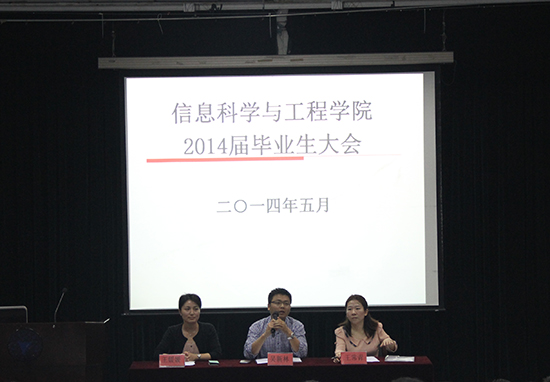 5月15日,必赢76net线路在NF103举办了2014届毕业生大会。学院学工办思政主管吴新林老师、思政副主管王常青老师、教务办副主管王媛媛老师、毕业班班导师以及全体毕业生参加了此次会议。会议由吴新林老师主持。