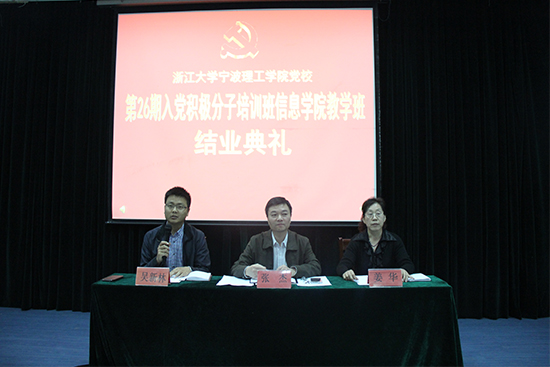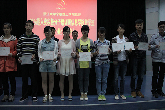 典礼在庄严的国歌声中拉开序幕。姜华老师宣读了党校优秀学员名单,主席台就坐的老师为优秀学员颁发了证书。徐倩倩同学作为优秀学员代表进行了发言,她认为通过党校的学习夯实了自己的理论知识基础,表示要将党校学习到的知识应用到生活和学习中去。张杰老师总结了学员们在本次培训中的收获和不足,并提出了希望:一是希望学员继续深入学习党的理论知识,不断提高自己的理论素养,特别要认真解决好世界观、人生观和价值观的问题;二是希望学员继续端正入党动机,解决好为什么要入党的问题,要有全心全意为人民服务的宗旨意识;三是希望学员按照党员的标准严格要求自己,在学习和生活中做好表率,以培训为新的起点不断进步,用实际行动争取早日入党。
