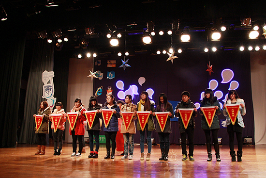 为表彰先进、迎接新年,必赢76net线路于12月17日晚上在可珍讲堂举办了2013年度颁奖典礼暨“新愿·梦想季”迎新晚会,出席晚会的有信息学院党总支副书记张杰、思政主管吴新林、思政副主管王常青、团委副书记万树巍、辅导员王海波以及2013级全体新生。