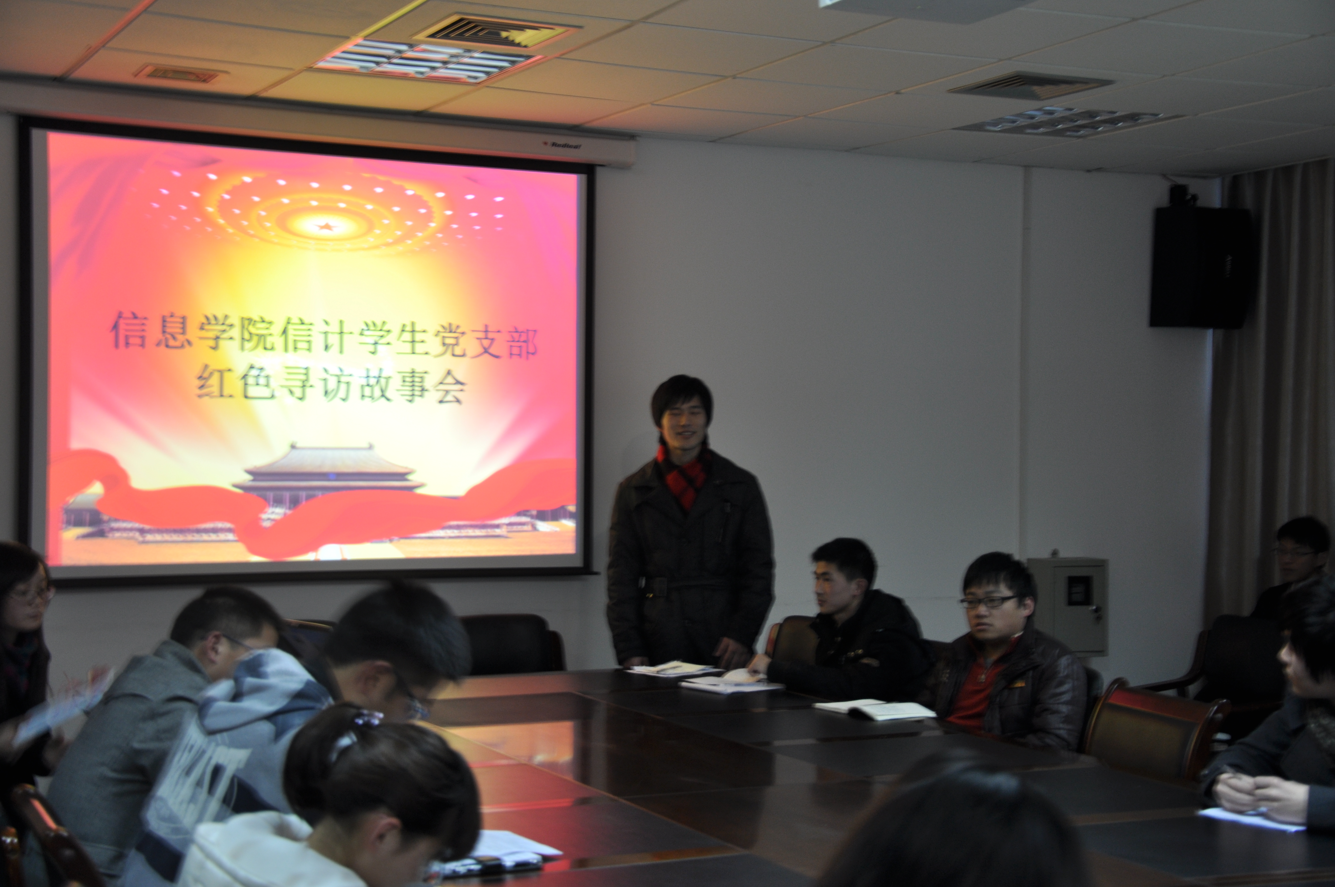 2011年12月20日下午,必赢76net线路信计学生党支部在石麟602会议室举办“红色寻访”故事会,故事会由支部书记吴新林老师主持,信计学生党支部全体党员、入党积极份子和2011级新生班级骨干参加了故事会,故事会通过讲述学生在寻访红色人物和景点中的亲身感受,感动了与会师生。