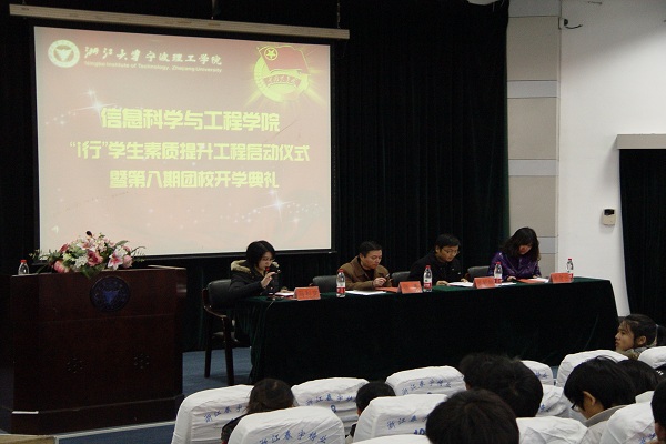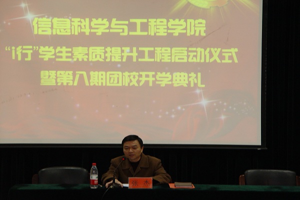 12月9日下午3:30,必赢76net线路“i行”学生素质提升工程启动仪式暨第八期团校开学典礼于NF103举行。必赢76net线路党总支副书记张杰、学院团委书记、思政主管吴新林、辅导员马利文、周金兰出席了启动仪式和开学典礼。此外,参加此次活动的还有学院团委、学生会、社团联合会主要干部,11级全体班长、团支书及团校学员。马利文老师主持了启动仪式和开学典礼。