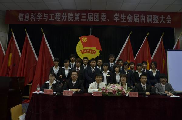 大会在庄严的国歌声中拉开帷幕,会上,代表们一致通过了共青团信息分院第三届委员会工作报告,信息分院第三届学生委员会工作报告,团费收缴和使用情况报告,第三届团委、学生会组织机构调整报告等。其中,信息分院学生会主席石恒智在作第三届学生委员会工作报告时表示,学生会是一个服务同学的组织,在秉承 “全心全意为同学服务”宗旨的同时,要更进一步解放思想、与时俱进、开拓创新。