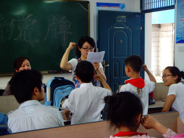 在了解白鹤小学班级情况、材料等前期准备工作后,信息分院第十六期预备党员以组团的方式在各组长的带领下进行以“行走的党牌”为主题的党团知识普及志愿者活动。本次党团知识的讲解内容丰富,党员们生动形象的讲解使得小朋友们全部都听得津津有味。关于少年先锋队的由来、中国共产主义青年团是怎么成立的、和中国共产党之间的关系等等这些问题,小朋友们发挥他们的奇思异想,同时通过党员们的细心讲解,也让他们了解到了更多的党团知识。之后的“红歌传唱”环节更是将现场气氛推向了高潮,这是信息的学生党员们为庆祝建党90周年而精心准备的节目。