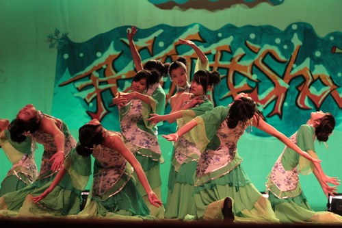 期间,大一的女生们带来了动人雅致的舞蹈《茉莉花》。聚光灯打在舞台的中间,衣着民族服饰的她们随着音乐的节奏舞动身躯,演绎出了一场茉莉花开的盛宴。分院话剧队带来的话剧《试戏》更是以它的幽默诙谐赢得了观众们的赞赏,场下掌声频频传来。节目的最后,团委、学生会主要学生干部的神秘节目终于揭示——《给力的广播操》。结合了小学、高中、大学广播操的经典动作,同时融入了新的元素,部长们展现了自己的风采——阳光、运动、有活力!晚会气氛再一次沸腾!