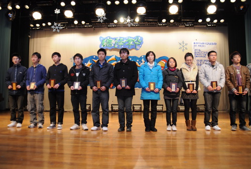 开场结束后,分院院长赵光宙老师上台总结了本学年分院各项工作情况,同时也向广大的信息学子提出了自己的期望和今后的规划。随后,晚会的三个篇章正式开始——蛹生·品青涩岁月,蚕结·毓灵秀精华,蝶舞·歌精彩人生。每个篇章的结尾则是盛大的颁奖环节。到场领导和嘉宾们颁发了分院2010年度的奖项:国家奖学金、2009至2010学年十佳学生党员、宁波市市级以上学生科研奖项、学院优良学风班、分院爱心班级、分院爱心使者、暑期社会实践先进团队和个人、分院体育贡献奖。获奖者今天的成绩不是一朝一夕成就的,荣誉背后包含的是他们认真的学习态度与团队合作意识。这不仅给了在场同学学习的动力,同时也让他们重新定位自己,制定新的目标,新的努力方向。