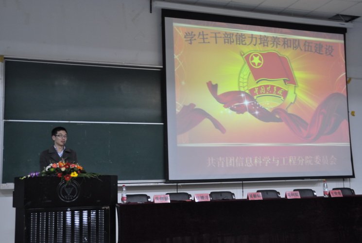 12月2日晚7点,信息分院于SB102举行了分院第七期团校开学典礼暨全体学生干部会议后,由分院团委副书记兼学生会秘书长许璐洋开课讲授了《学生干部能力培养和队伍建设》。团委副书记倪玮,分院主席团以及此次团校的全体学员听授了本次讲课。