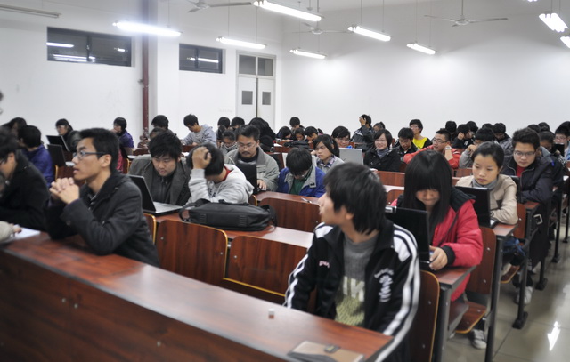 活动依始,在主持人的带领下,全场人员重温入团誓言,再一次发出了自己对团的誓言。本次党团知识竞赛采用上机答题形式。值得一提的是,上机答题的程序是由软件091班的同学设计的,主要内容分为程序主题部分和学生信息库以及题目库。程序主题部分通过代码编译实现,包括整体框架和各功能模块;学生信息库为各班级学生信息,以登入身份使用;题库则为党团基本理论知识,用作答题时随机抽取用,通过不断更新,达到题库数据的实时性。
