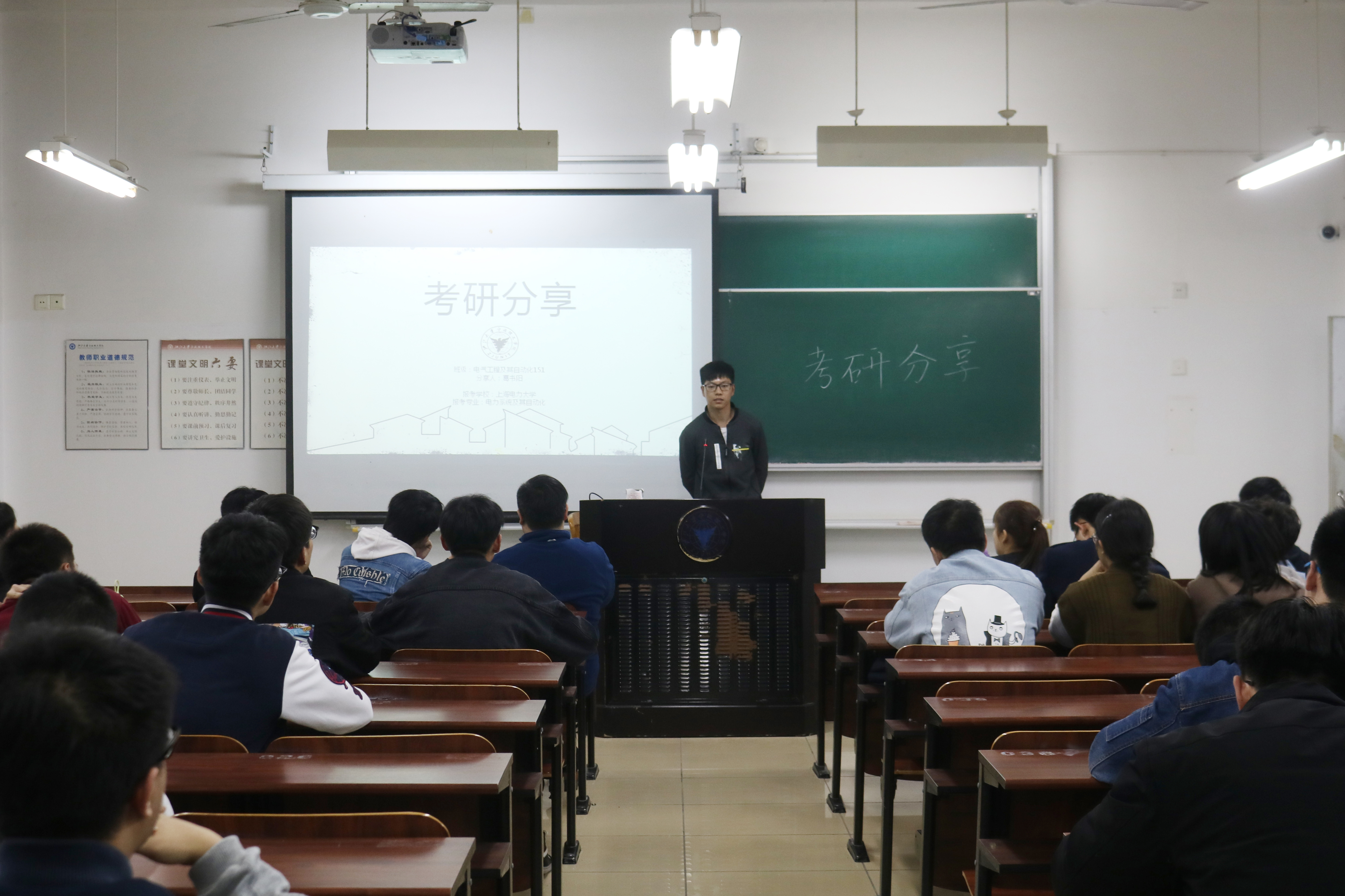 此次交流会的主讲是2015级6位今年成功上研的大四同学,录取院校包括厦门大学(985高校)、杭州电子科技大学、上海电力大学、浙江工业大学等高校。他们为此次分享会做了充足而细致的准备,围绕报考流程、专业选择、复习方法与技巧、复试面试要点等多角度,为在座学弟学妹们分享了自己考研过程中的点点滴滴,并为同学们推荐了一些实用的考研复习资料。几位学长不谋而合鼓励考研的学弟学妹们,在考研的过程中要保持良好的心态,从一而终,只有不断坚持才能成功,希望大家可以劳逸结合,竭尽全力去准备考研,无论结果如何,都不会让自己后悔。在座的同学们都听得非常认真,受益良多。