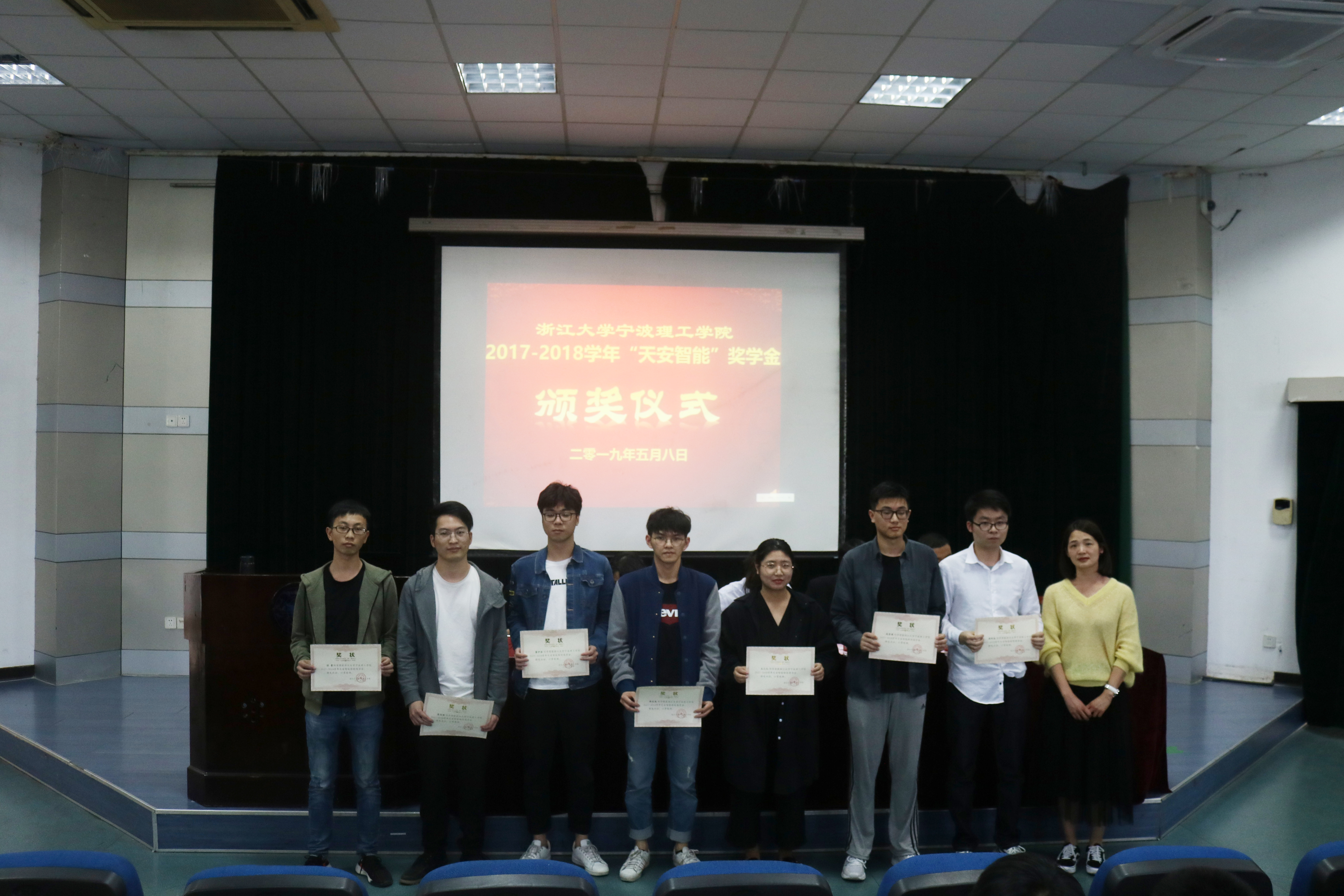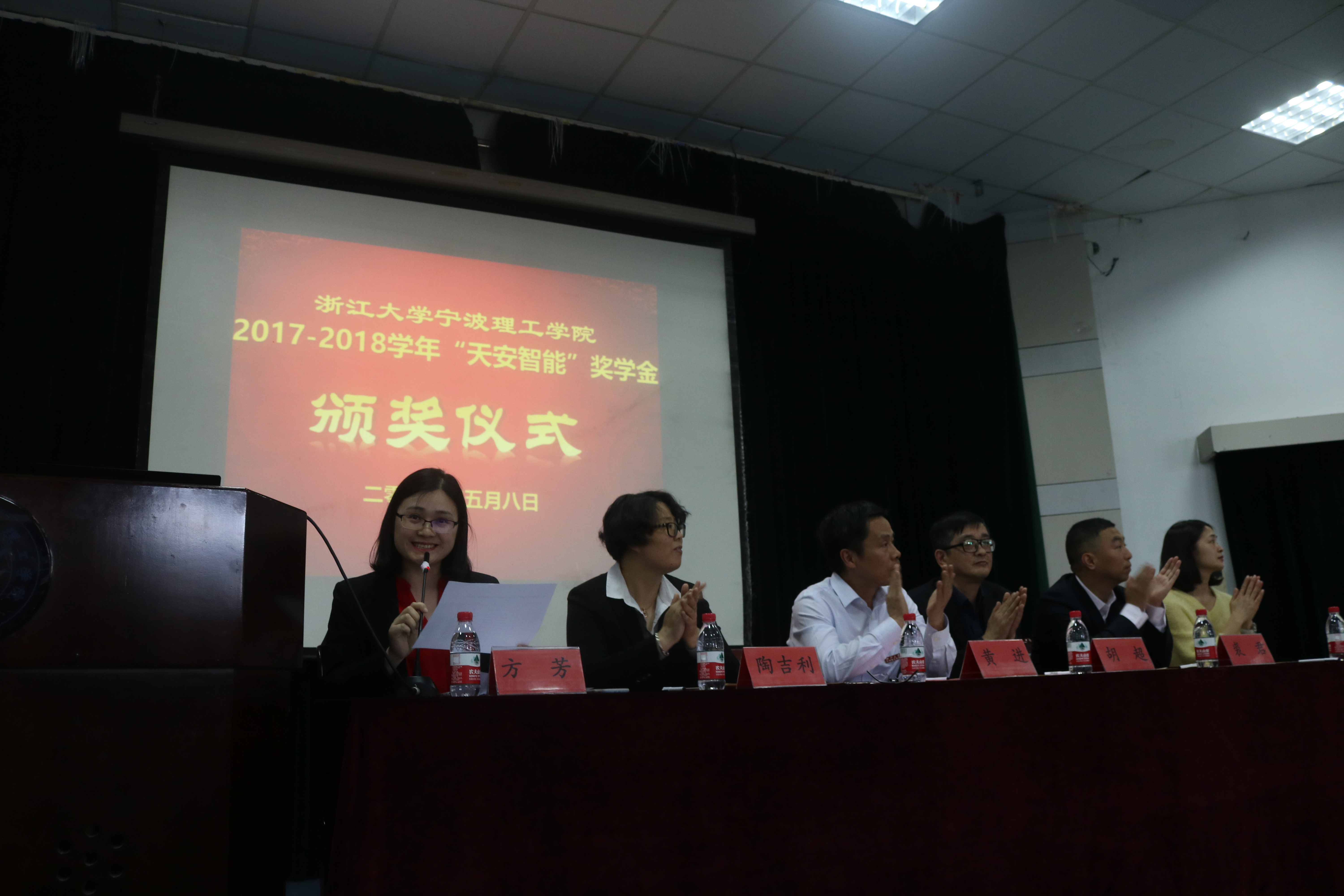 会议伊始,学院举行了“天安智能奖学金”和“汇冠奖学金”的颁奖仪式,天安智能电网科技股份有限公司翁经理及学院领导为获奖毕业生颁奖并合影。