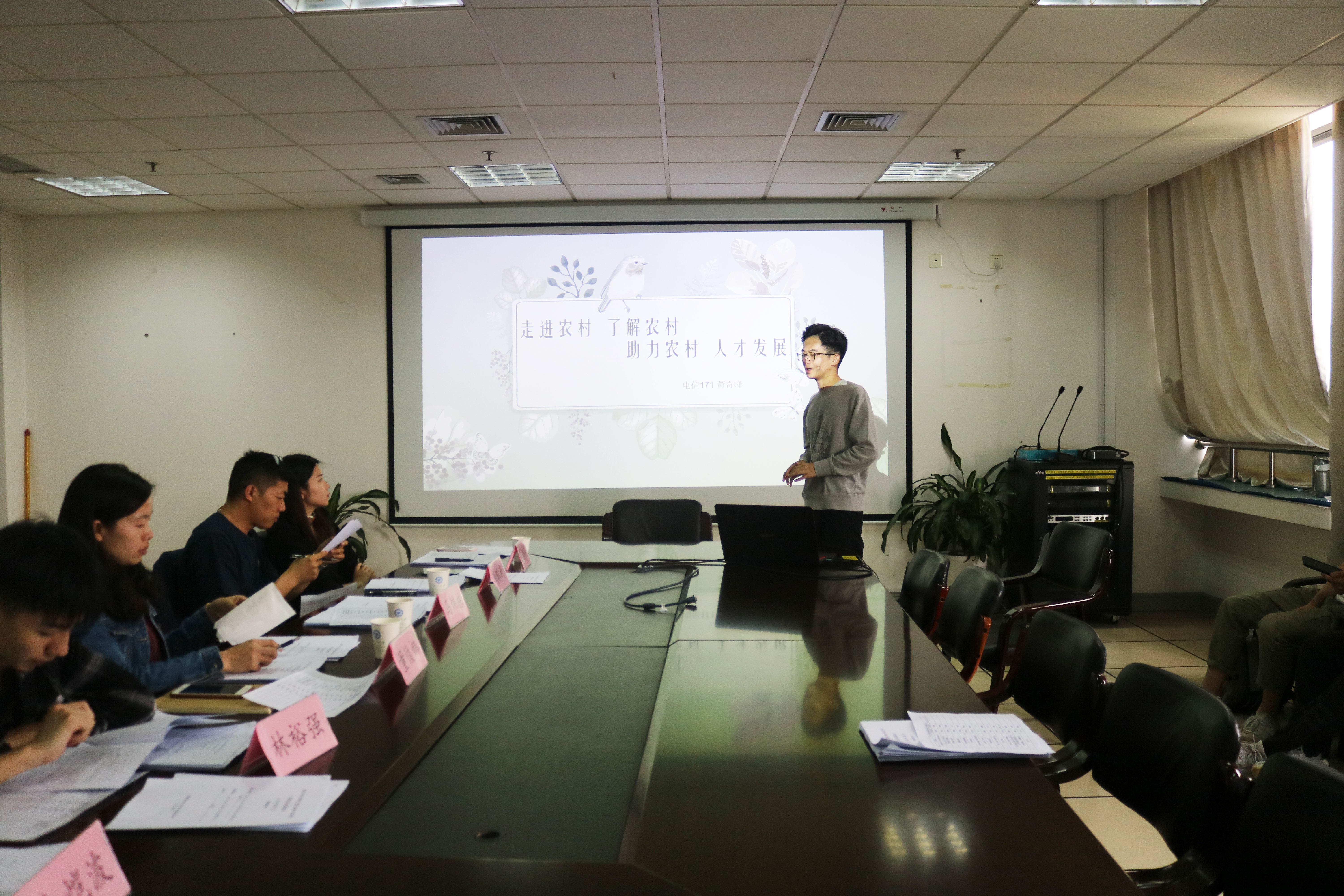 5月10日中午,必赢76net线路在石麟大楼902-1举行了2019年暑期社会实践立项答辩会。校团委副书记包静昇、学院学工办副主管董俊娜、数据学院团委书记马炜栋、必赢76net线路团委书记蒋鹏涛、副书记朱恺波、学生会主席林裕强担任评委。本次社会实践答辩历时近三个小时。