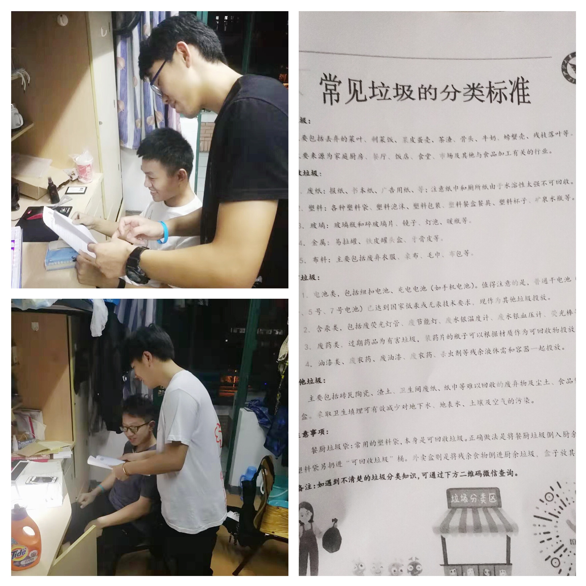 最后大家分组下寝室,对我们26栋的学生寝室进行了全覆盖式的宣讲,并且分发不一样的“垃圾菜单”帮助同学们更好地投放垃圾。