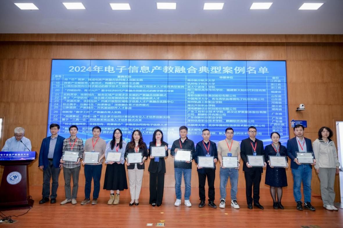 大会发布了2024年电子信息产教融合31项典型案例。我院申报的《以模拟版图岗位需求驱动的数字技术工程师集成电路工程技术人才培育》成功入选,中国电子工业标准化技术协会张宏图理事长和中国电子技术标准化研究院张更生党委副书记共同为我院及北京邮电大学、南京航空航天大学、杭电等单位代表颁发证书。